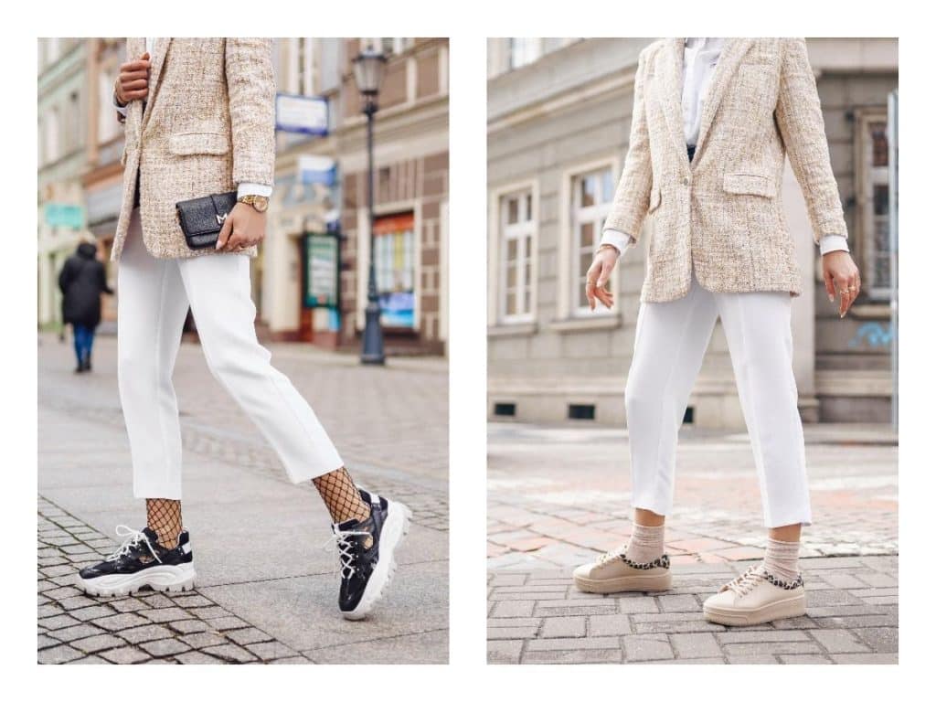 Porter des chaussures avec un pantalon blanc femme : opter pour les baskets